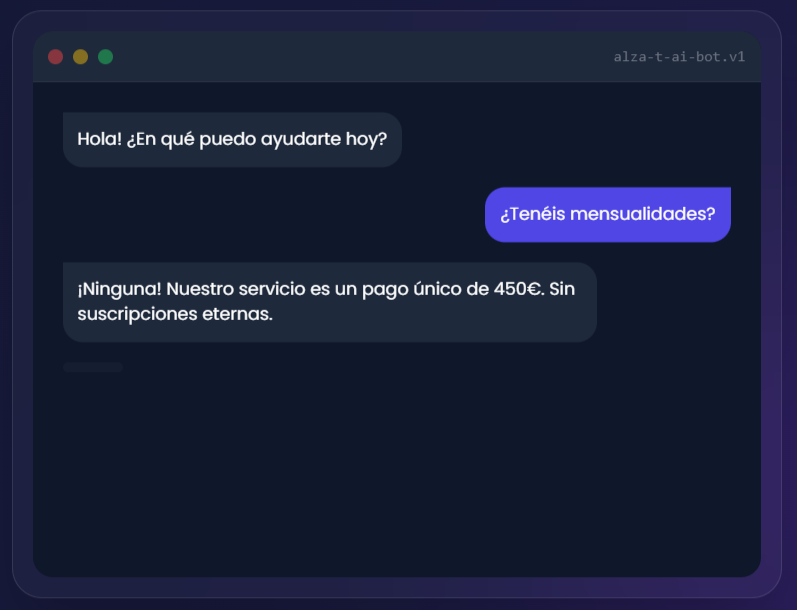 Implementamos un Chatbot IA que atiende, cualifica y vende por ti las 24h. Sin mensualidades. Pago Único.
